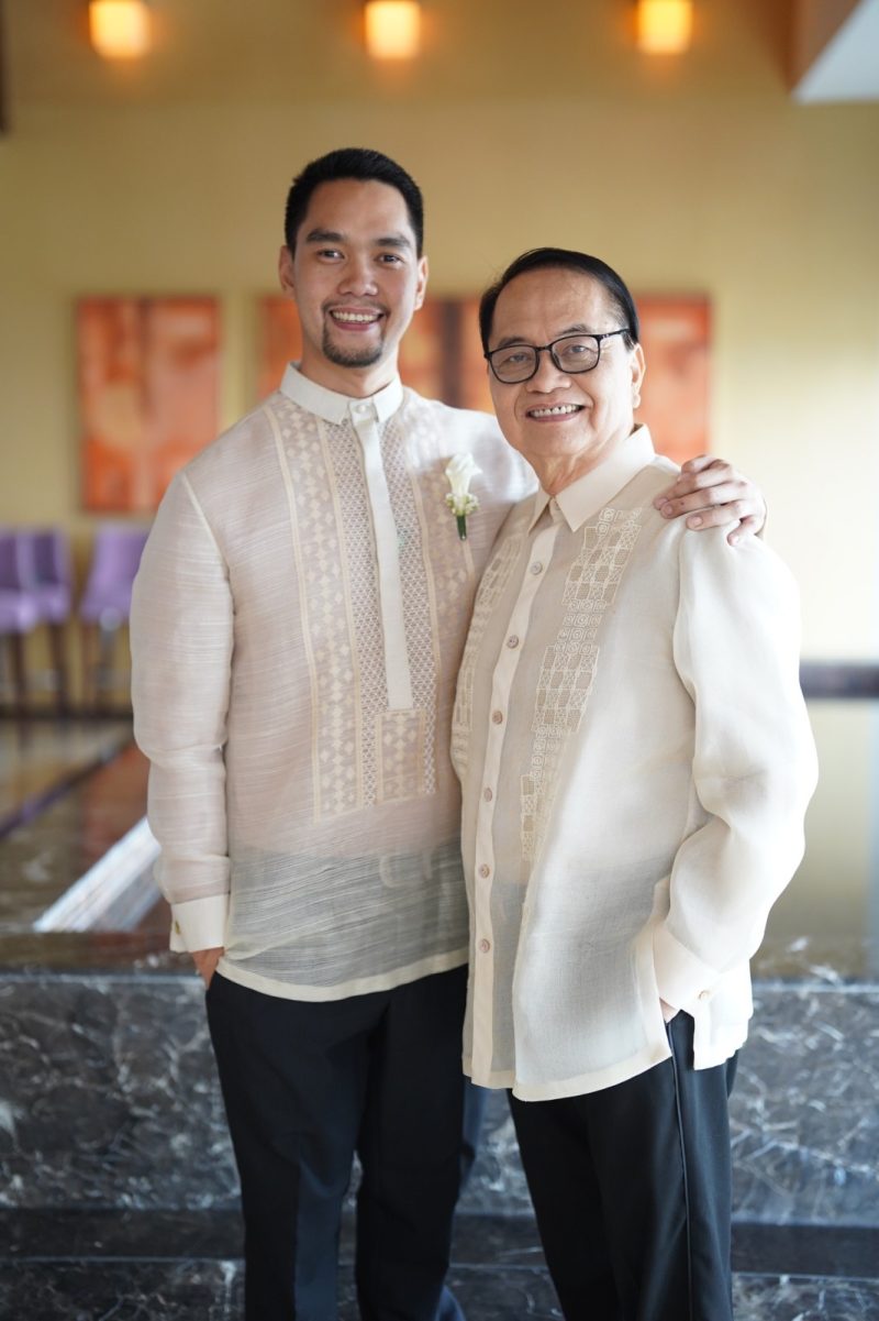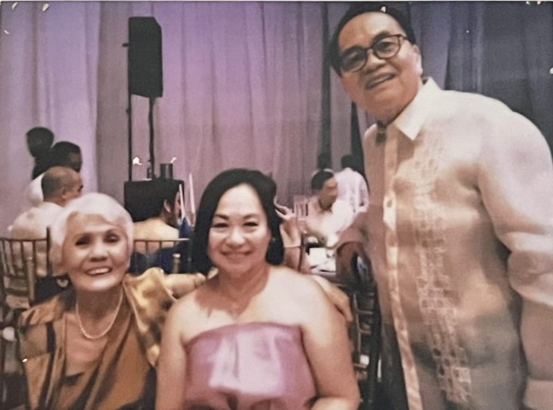 Raf’s happy grandmother Cecille Crisostomo, with his dad Chito and guest Thelma Sioson San Juan at the reception