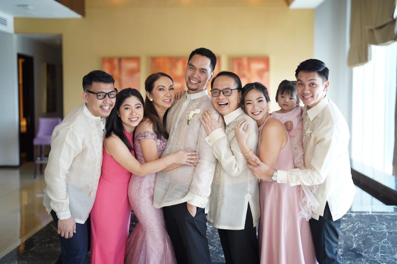 One big family hug before the wedding: Raf and Chito and Anna Sobrepena with daughter Mica (second from left), her husband Joash Llaneza, Gab and wife Gen and daughter Galilee