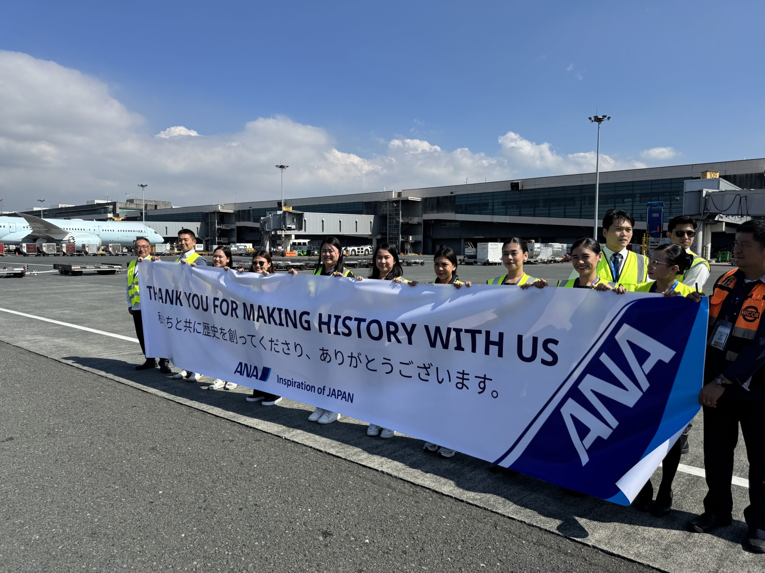 As the anniversary flight departed, ANA staff assembled at the gate and ramp to wave to the customers onboard and wish them a safe journey.