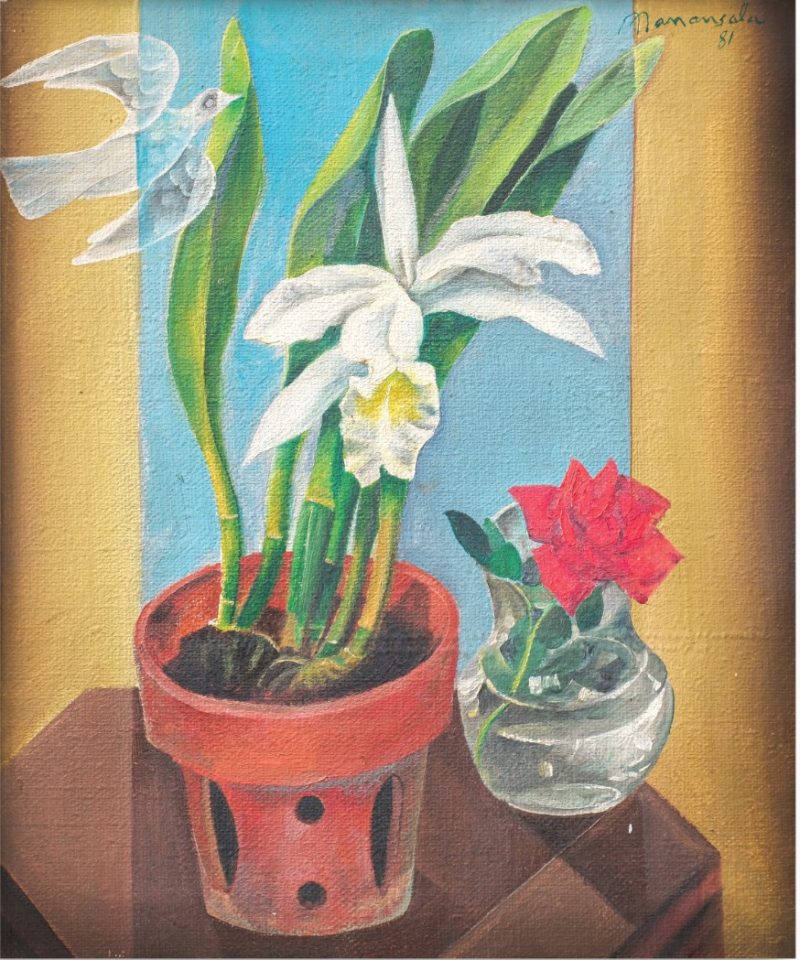 From the Virginia ‘Leni’ V. Reyes collection, Vicente Manansala (1910–1981), Madonna, signed and dated 1980 (upper left), oil on canvas, 26” x 30” (66 cm x 76 cm), sold for P9,612,800