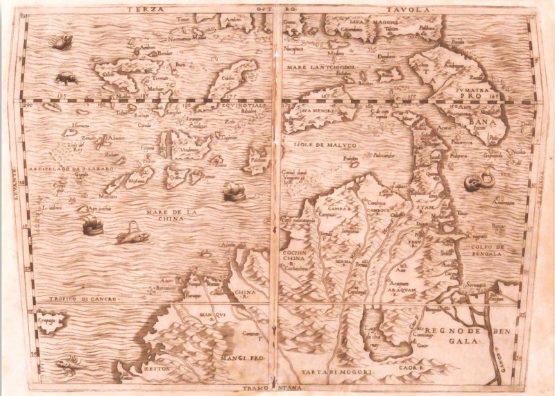 Giovanni Battista Ramusio (1485–1557), Giacomo Gastaldi (C. 1500–1566), ‘Terza Ostro Tavola (The Ramusio-Gastaldi Map of 1563),’ published by Lucantonio Giunti with Ramusio in Venice. Map is hexagonal, measuring 38 cm at the top, 39.2 cm at the middle, 36 cm at the bottom with a height of 28 cm, 12” x 16” (30 cm x 41 cm), sold for P2,643,520