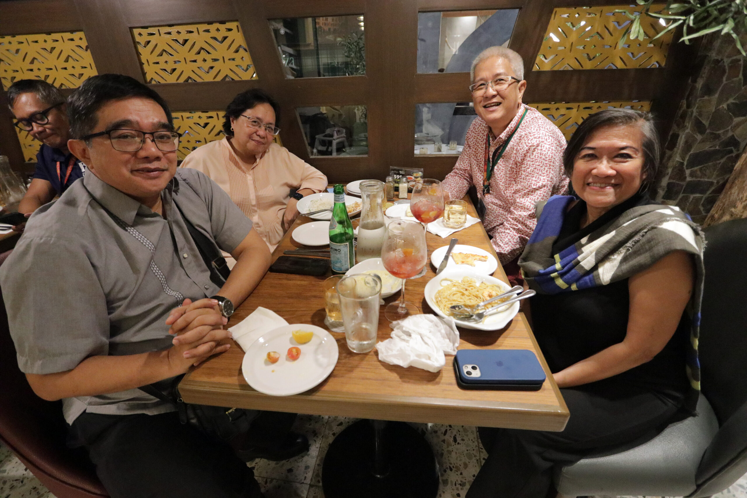 At Chairman’s Dinner, an appreciation event in the 21st Cinemalaya festival, from left: CCP VP-artistic director Dennis Marasigan, CCP arts education department manager Eva Mari Salvador, CCP production and exhibit department manager Mauro Ariel Yonzon and Cinemalaya deputy festival director Tess Rances (Photo by Kiko Cabuiena)