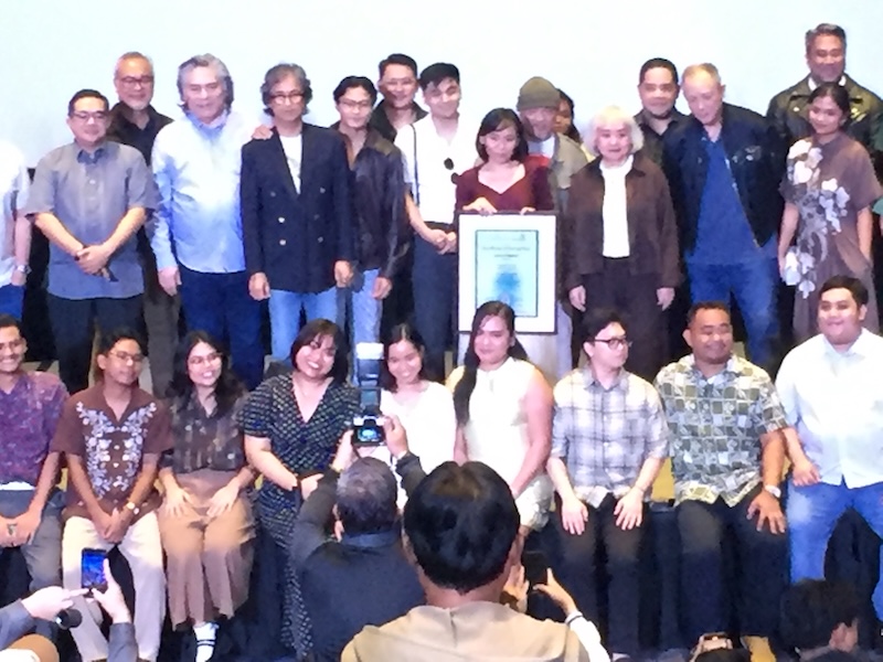 The cast and crew of “Padamlagan” led by director Jenn Romano and lead actor Ely Buendia receiving the Certificate of Recognition during the film’s gala night. They are joined in by Cinemalaya officials led by founding chairman Tony Boy Cojuangco, festival president Laurice Guillen and festival director Chris Millado. Photo by Totel V. de Jesus