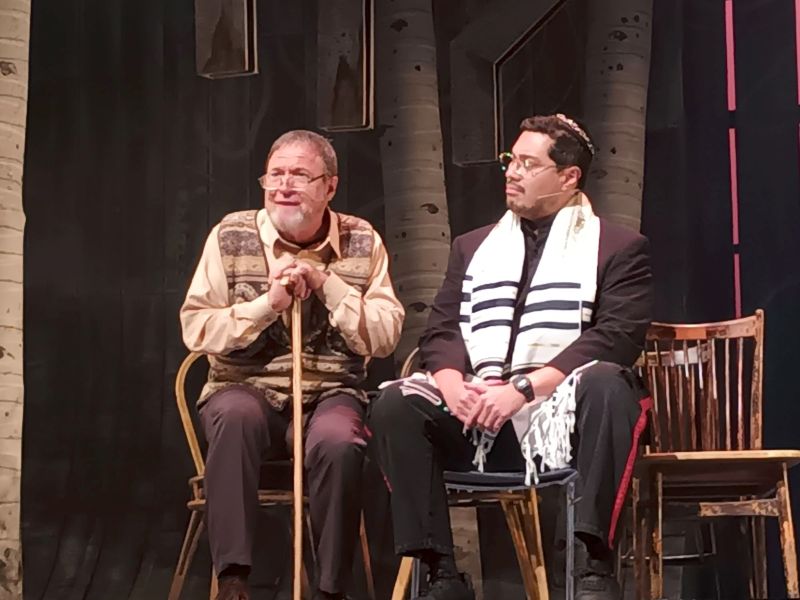In this ‘Prayer’ scene, Stephen Cadd (left) is Gander mayor Claude Elliott, one of the many characters he plays. Gian Magdangal is the rabbi in this scene, based on a real person, Rabbi Leivi Sudak. Gian plays Oz the constable in other scenes. (Photo by Totel de Jesus)