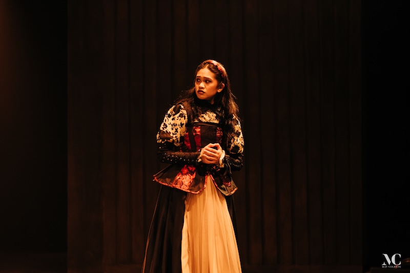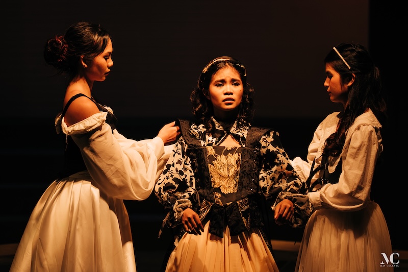 Above all are the three actresses—Chloe Abella, Francesca Dela Cruz, and Maliana Beran—tackling the three incarnations of the titular character, demarcated not so much by age as by a specific emotional fabric. All of them are marvelous, in their individual scenes as in the parts that disrupt, intersect, and realign their timelines (the Act I finale, in particular, becomes a thrilling piece of meta-theater, thanks to them).