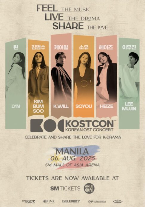Artists Soyou, HEIZE, Lyn, and EXO’s Chen will be featured in KOSTCON (Koream OST Concert) at the SM Mall of Asia Arena on Aug. 6, 2025. The concert series kicks off in Jakarta on August 2, followed by Manila, Dubai (September 5), Bangkok (September 13), and Penang (October 25).