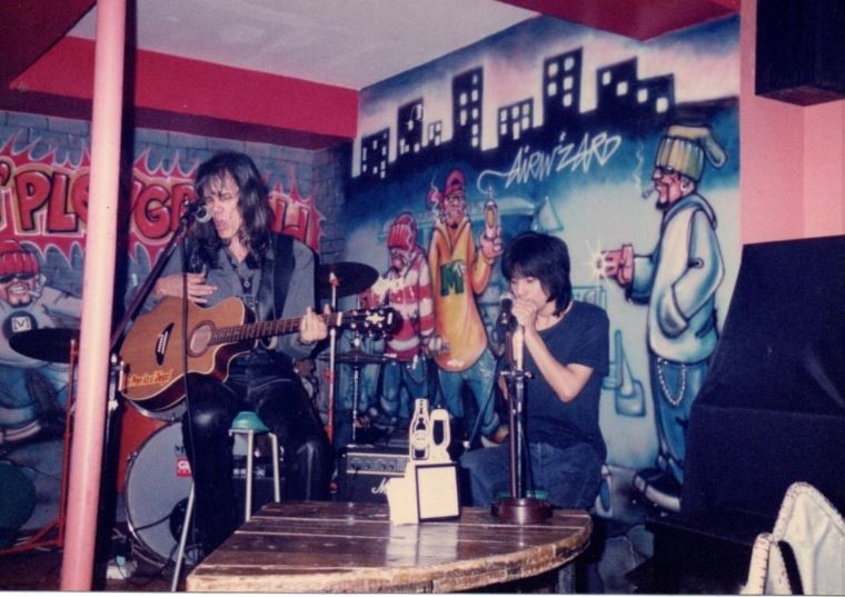 Pepe Smith jams with Nino Mendoza of the Blue Jean Junkies sometime in 1999 at Oracafe. (Photo from Khavn de la Cruz)