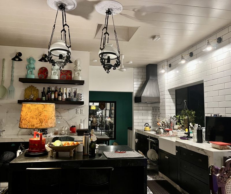The owner’s friend, the famous fashion designer Danny de la Cuesta, donated about a dozen old wood-frame glass doors. (He passed away a few years ago.) These were put to good use after they were converted to barnyard doors for easy operation.