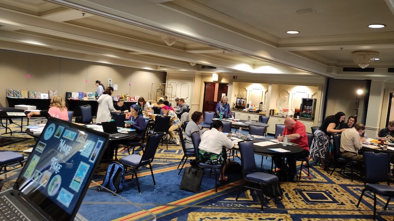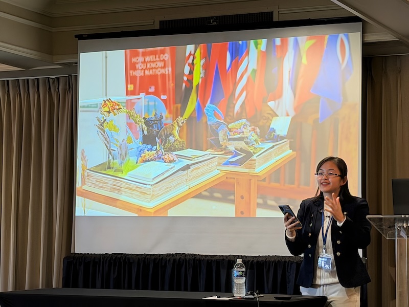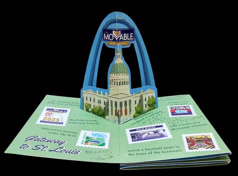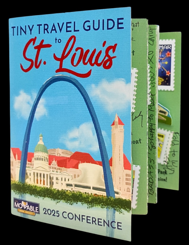 During the MBS conference, Nayve facilitated the Make-and-Take Workshop, where she designed a passport-sized Tiny Travel Guide to St. Louis which conference-goers may assemble into their own pop-up book. It came with a stamp collection of landmarks and food, a collaborative project among 24 artists from The Fold, 20 of whom are Filipinos.