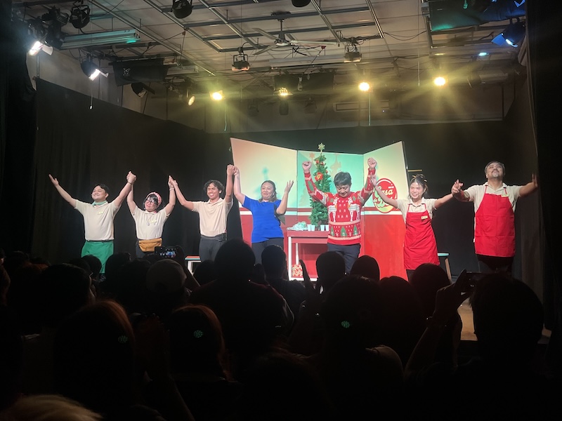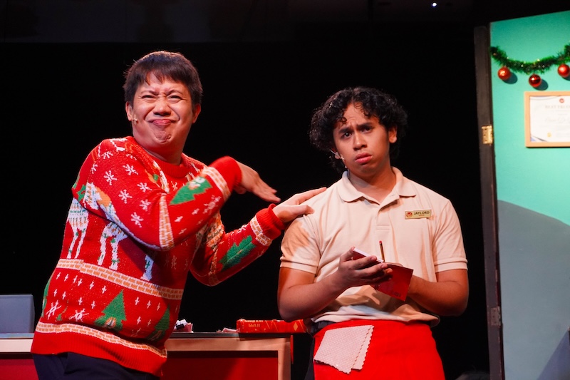 Onstage, I found myself in a kind of out-of-body experience, realizing that I was suddenly appearing in the play I was supposed to be reviewing—must I now review myself as well? It was also distracting—in the best possible way—to watch the actors commit to the bit. One of them was Ash Nicanor, a riot as a TikToker housemaid in last year’s Let’s Do Lunch, who was now begging me to let her keep her fictional job. Viola’s nosy character was refusing to stand down, and I had half a mind to declare her fired. At some point, Gino Ramirez, who played the manager, whispered to me: “Sabihin mo na lang, alam mo na ang lahat ng ‘yan.”