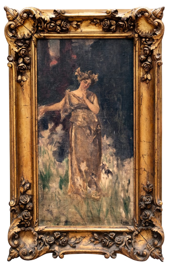 From the Don Jorge B. Vargas collection, Juan Luna y Novicio (1857-1899), ‘Idilio’ (Idyll), ca. 1880s, oil on canvas, 28 1/2″ x 15″ (72 cm x 38 cm)