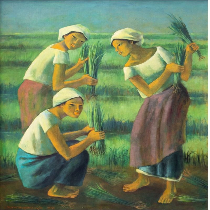 Anita Magsaysay-Ho (1914-2012), ‘Planting Rice,’ 1990, oil on canvas, 36″ x 30″ (91 cm x 76 cm)