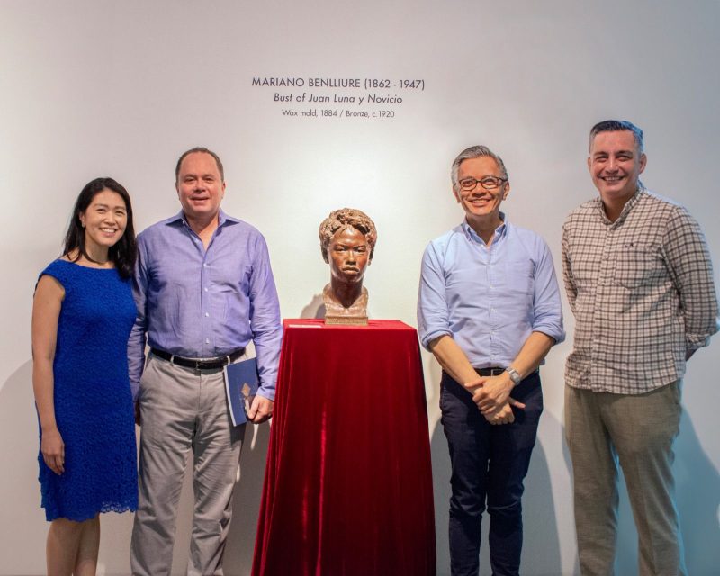 Salcedo Auctions vice chair and chief financial officer Karen Lerma, National Museum Board of Trustees chairman Andoni Aboitiz, Salcedo Auctions chairman and chief specialist Richie Lerma, and National Museum director Jeremy Barns with the bronze bust of Juan Luna y Novicio by Spanish sculptor Mariano Benlliure