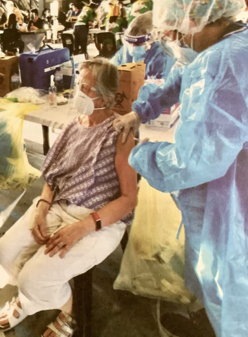 Olive Tripon getting her first jab