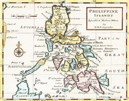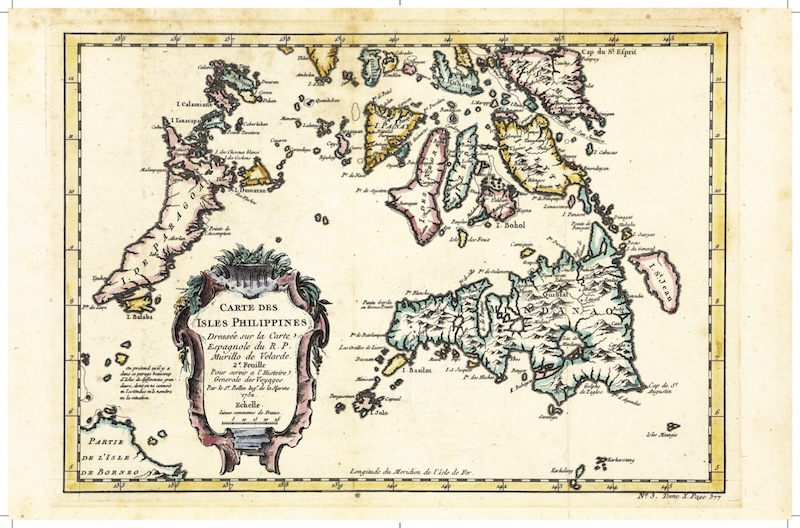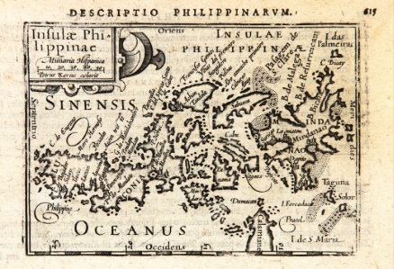 Two of the earliest cartographical samples include ‘Insulae Philipinae’ (Philippine Islands), Petrus Kaerius’ ca 1598 map that shows the country on its side (left), and Alain Manesson Mallet’s ‘Manille,’ (‘De L’Asie Figure LV,’ from the book Description de l’Univers, 1683).