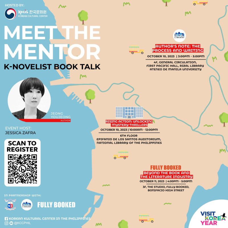 Meet the Mentor: K-Novelist Book Talk Show, in partnership with the National Library of the Philippines, the Rizal Library, and Fully Booked, will be held October 10–11 at National Library of the Philippines, Rizal Library–Ateneo de Manila University, and Fully Booked BGC High Street Branch.