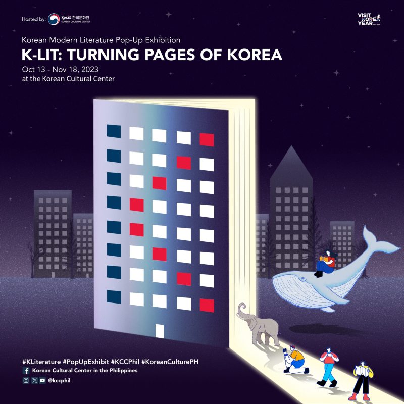 The K-Lit: Turning Pages of Korea exhibit is open to the public from October 13 to November 18, Monday to Saturday (excluding holidays) from 9 am to 4 pm at the 5F, Multipurpose Hall of KCC in Taguig City. No registration needed.