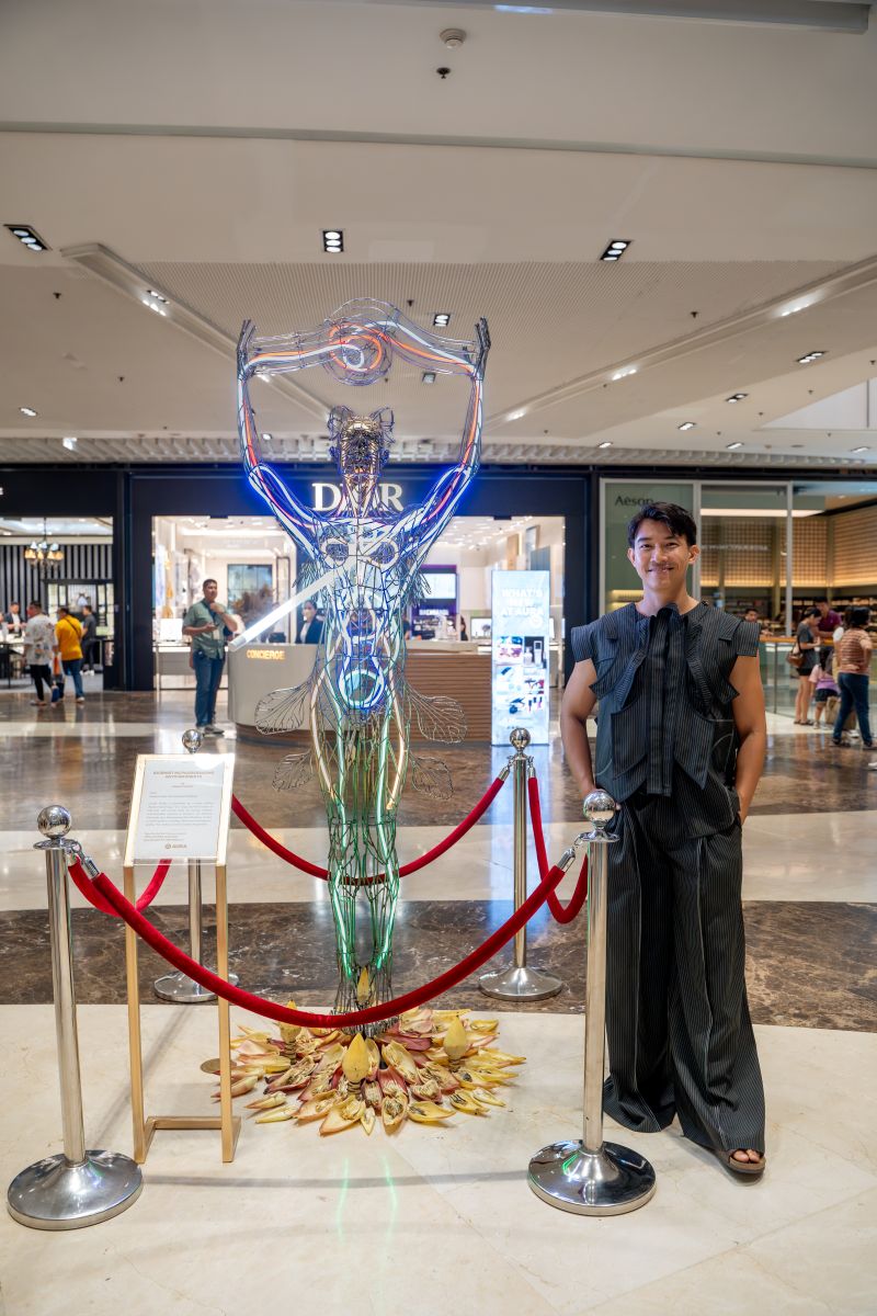 Sculptor and visual artist Joshua Limon Palisoc and his Sa Bingit ng Pagbabagong Anyo ng Diwata at the mall’s Upper Ground Level Main Entrance 1.