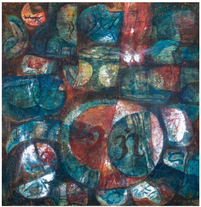 Lot 4, from the Grace Kalaw Katigbak collection, Augusto Albor (b. 1948), Etherfield, signed and dated 1996 (upper right and verso), acrylic on canvas, 72″ x 72″ (183 cm x 183 cm), sold for PhP 2,336,000