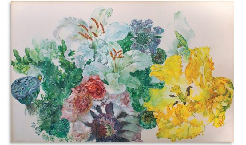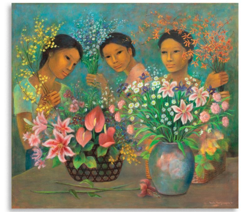 Lot 57, from Zita Feliciano collection, Anita Magsaysay-Ho (1914 – 2012), Women with Flowers, signed and dated 1993 (lower right), oil on canvas, 34″ x 37 1/2″ (86 cm x 95 cm), sold for PhP 31,536,000