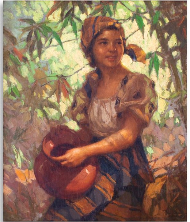 Lot 89, Fernando Amorsolo (1892 – 1972), ‘Dalagang Bukid (Woman with Banga)’, signed, inscribed Manila and dated 1929 (lower right), oil on wood, 16″ x 13 1/2″ (41 cm x 34 cm), sold for: PHP 10,512,000
