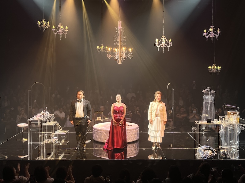 Cast of ‘Evening at the Opera’ at curtain call: Joshua Cabiladas, Ana Abad Santos, and Frances Makil-Ignacio (Photo by Vincen Gregory Yu)