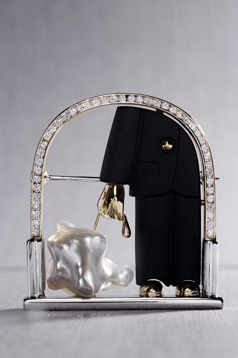 Hans Brumann brooch of 18K yellow gold, platinum diamond set, produced in lost wax moulding process (Photo by T. Sioson)
