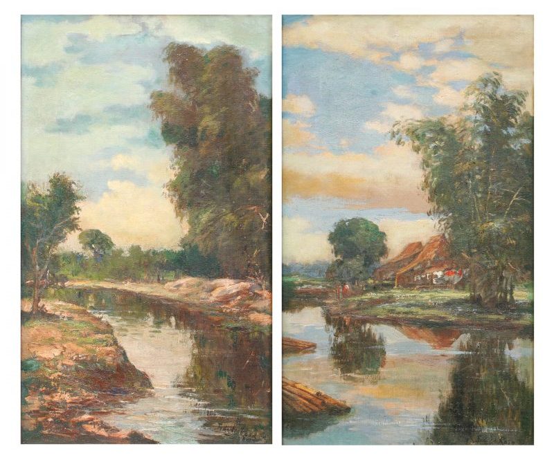 Pair of landscapes by Fabian de la Rosa in the Asian Cultural Council Auction, from Nene Quimson collection