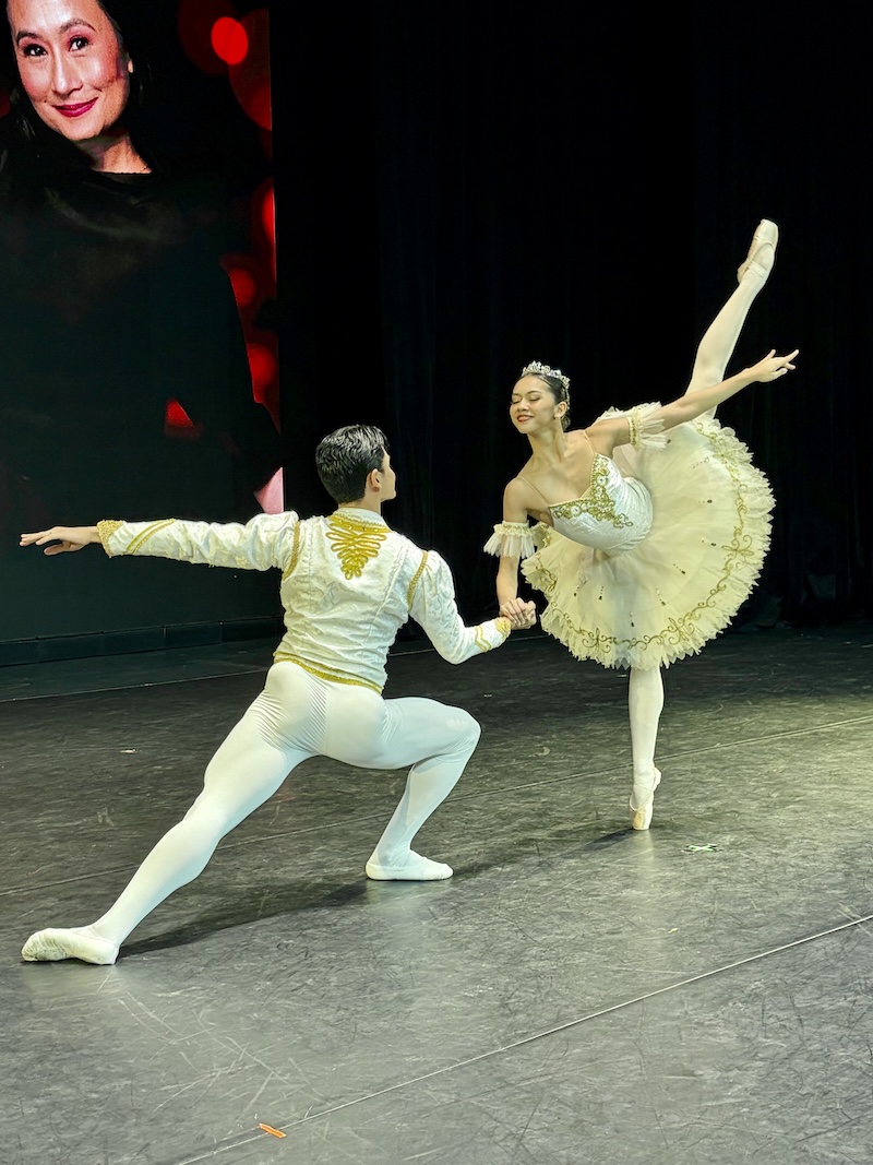 Joshua Enciso and Shamira Drapete in ‘Sleeping Beauty,’ with Lisa Macuja Elizalde’s photo in background
