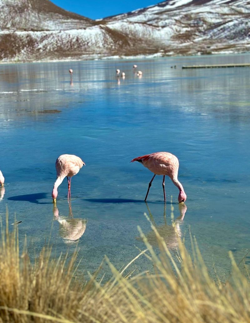 The red algae in the Red Lagoon is what Bolivian and Chilean flamingos grow up eating, needing to consume 160 grams each day; it might not sound like a lot, but think about how light each strand of algae is! As such, these pink flamingos turn pink only in their adult years once they’ve consumed a lot of red algae.