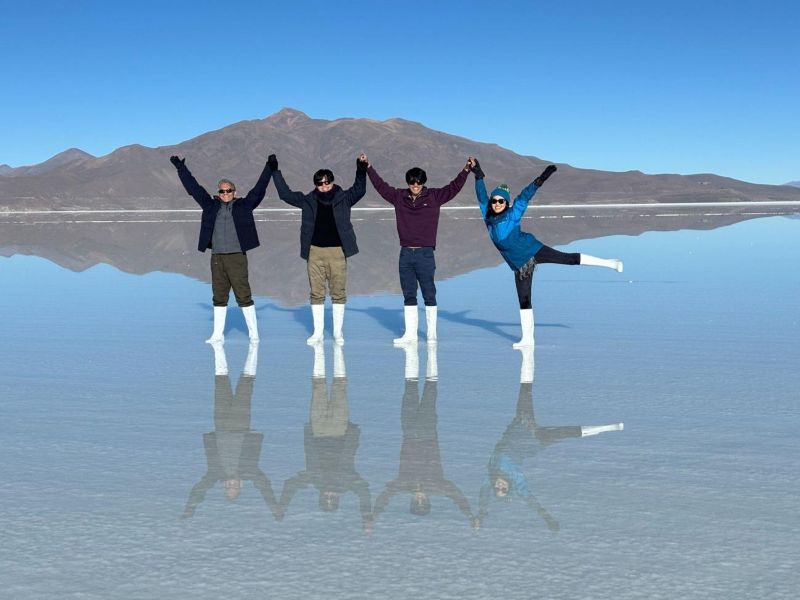The Uyuni salt flats are a difficult destination to travel to if you want to get all the photos. If you want the endless white crystal, the winter (June-September) season is perfect due to the lack of rainfall. Arguably more pristine, however, is its reflectiveness and feeling of peace when covered in a sheet of rainwater during the rainy summer season. We were lucky to catch the remaining large beds of water in winter.