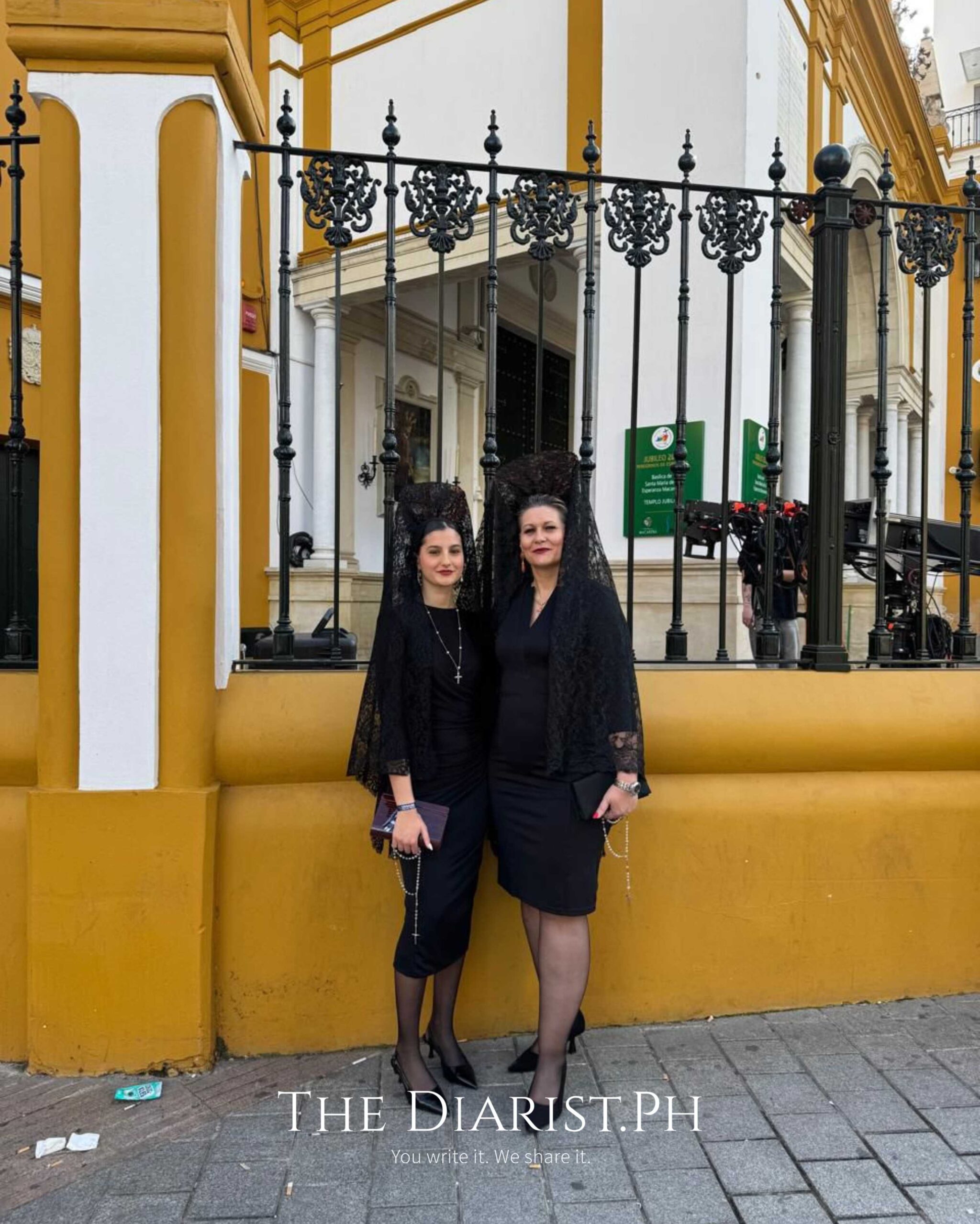 The beautiful women of Seville, dressed in the customary elegant black dress and black veil, before the Maundy Thursday procession outside the Cathedral of the Macarena (Photo by Luis Carlo San Juan)