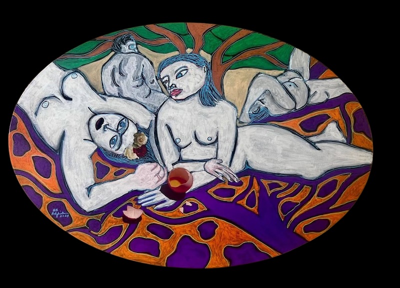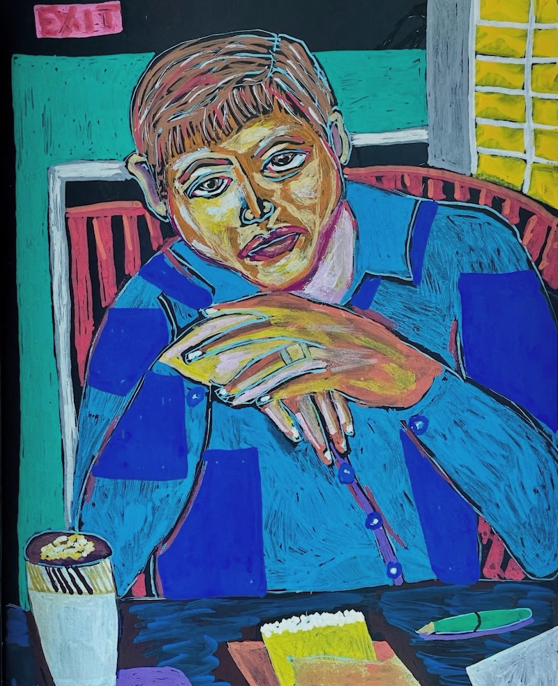 Storytelling anchors Bolipata’s practice. Personal history—real, reimagined, and symbolic—animates her compositions. Form challenges her; color propels her. Blue lifts her toward the heavens, orange roots her to the earth.