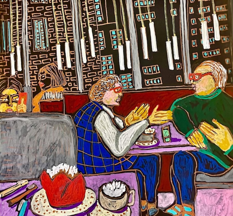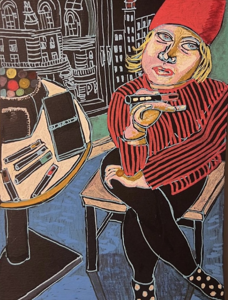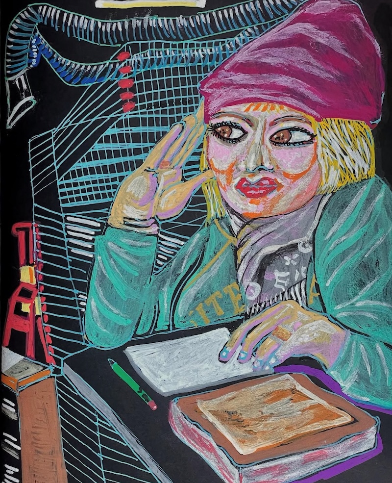 By day, she attended to obligations; by night, she surrendered to art-making. Armed with Posca acrylic paint markers and a sketchbook, she sketched cafe patrons, New York’s landscape and denizens—quick, spontaneous studies completed later in the quiet of her brother’s apartment. The portability and immediacy of the medium sharpened her draftsmanship, demanding precision and decisiveness.