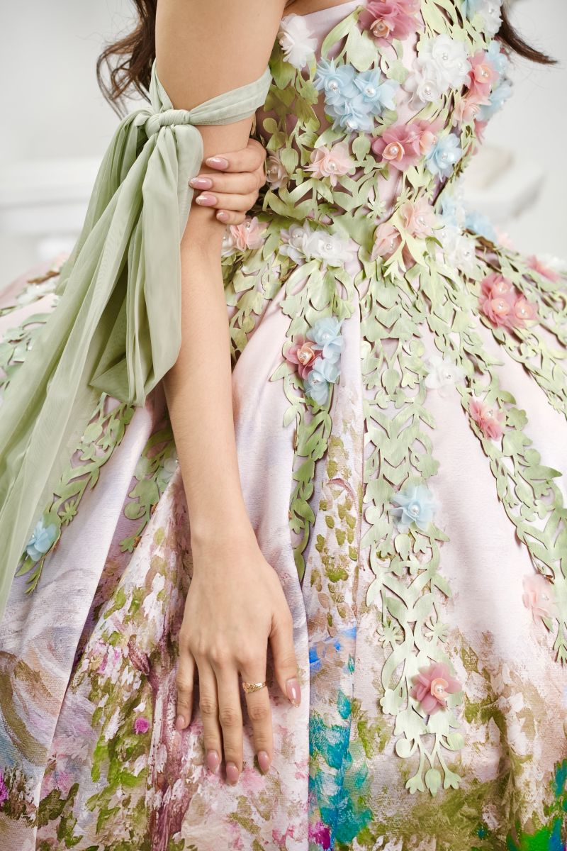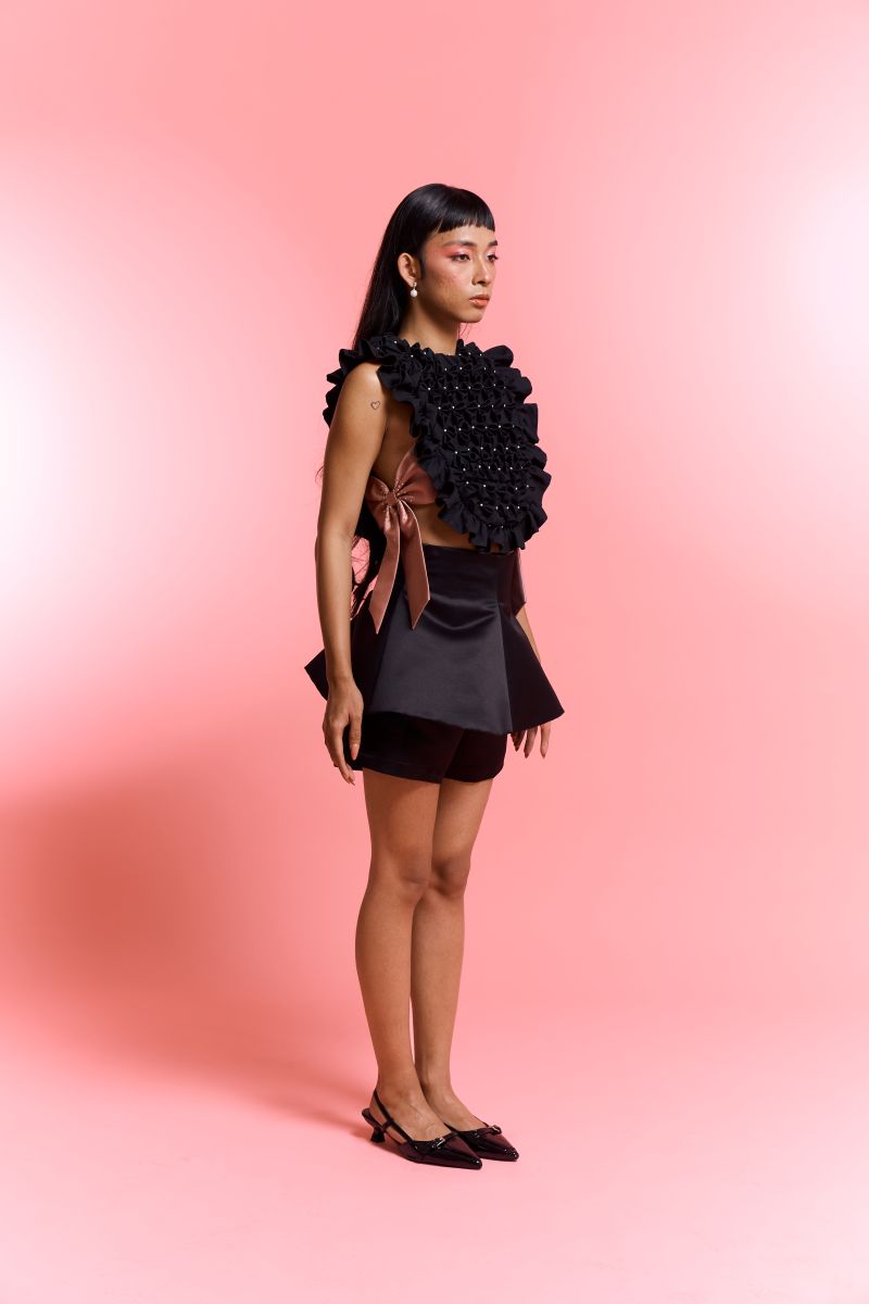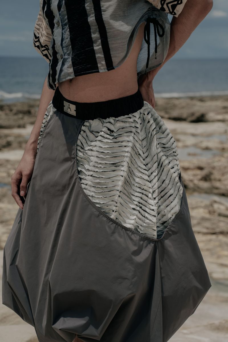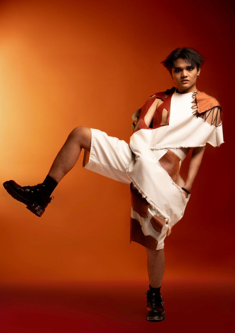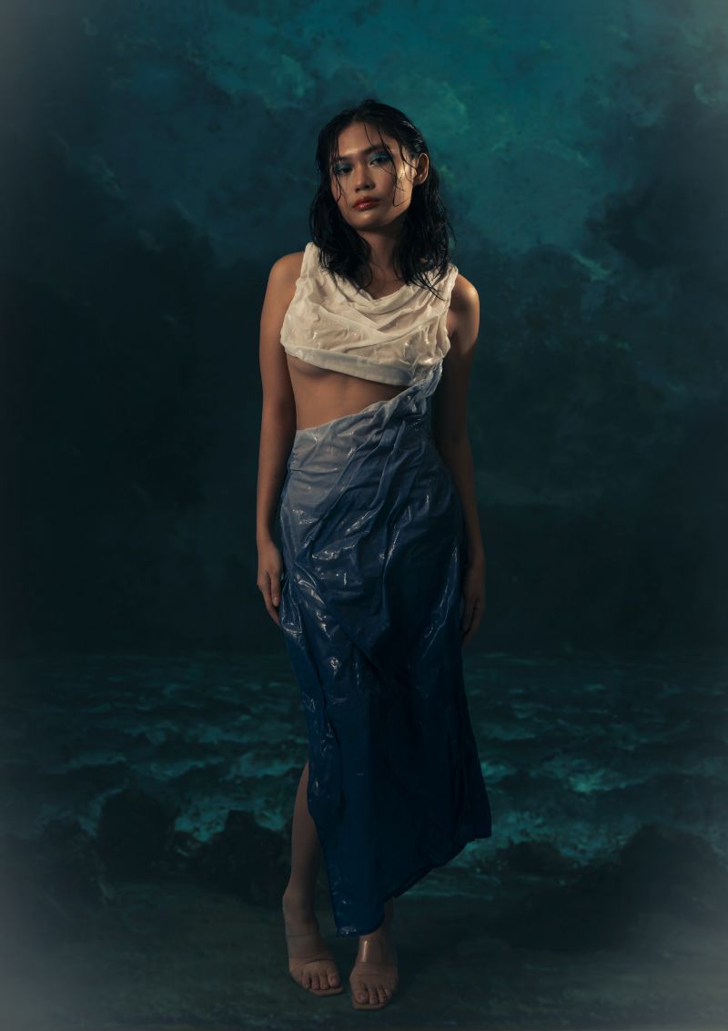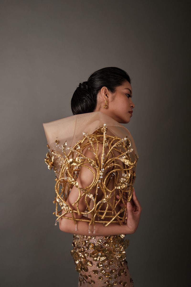 “My collection is about my mom. My look for the exhibition is an apron. We dye salted eggs in the family business, and I use this in my apron. There’s a crystallization process involved,” says Lance Rubio, whose collection was named “Para Kay Nanay…”