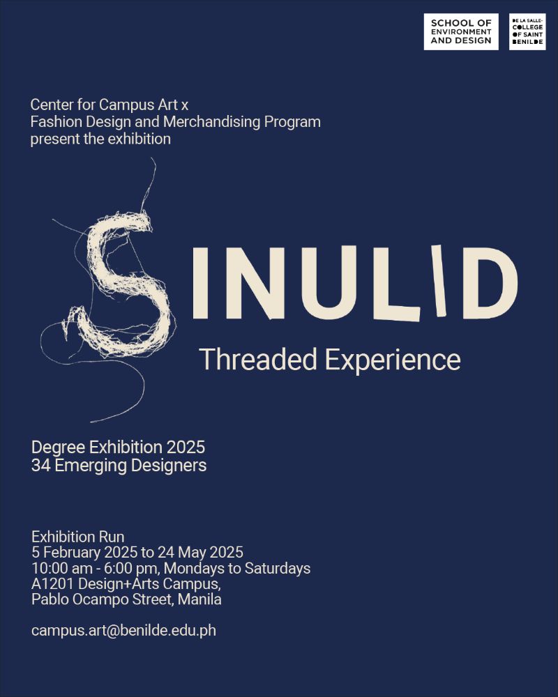 The Benilde Fashion Design and Merchandising graduating class’ Sinulid: Threaded Experience is holding an exhibition until May 24 at the Design + Arts campus of the school.