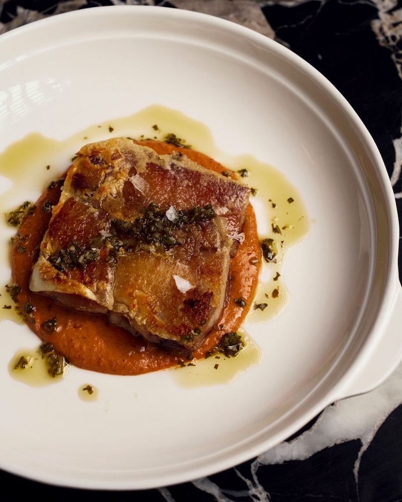 When no one was looking, I paired the arugula with a sliver of pig ears and was pleased with the peppery-pork bite. Cocktails in hand—a Negroni for me and the bourbon-based Millionaire 26 for my companion—it was a fitting start to the meal.