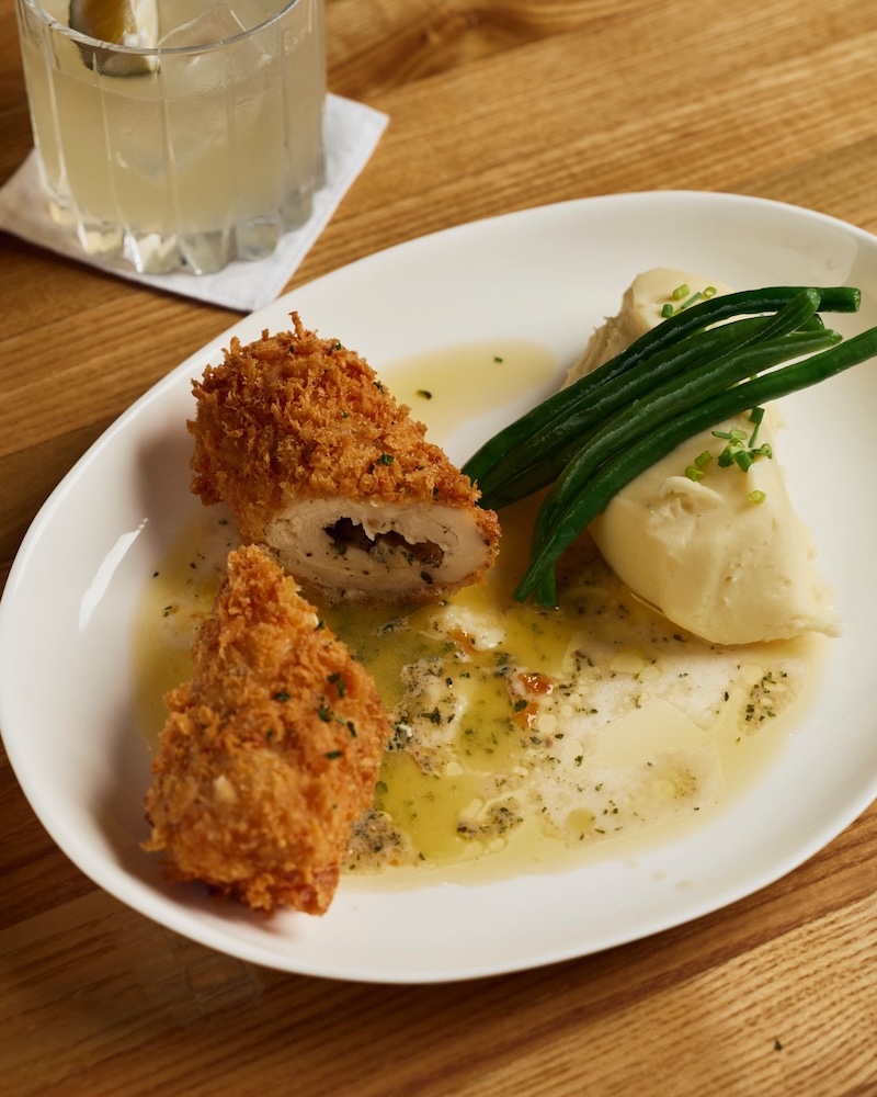 For our mains, we shared the Steak Frites and the Chicken Kiev, the latter an old-school favorite of breaded chicken fillet stuffed with herb butter. Slicing into the chicken and seeing all that melted butter ooze out onto the plate brought us back to our college days when we would cross Katipunan Ave. to go to a restaurant known for this dish. It was nothing like the one served at Harry’s, that was elevated with a side of silky mashed potatoes topped with haricot verts, but it was close enough.