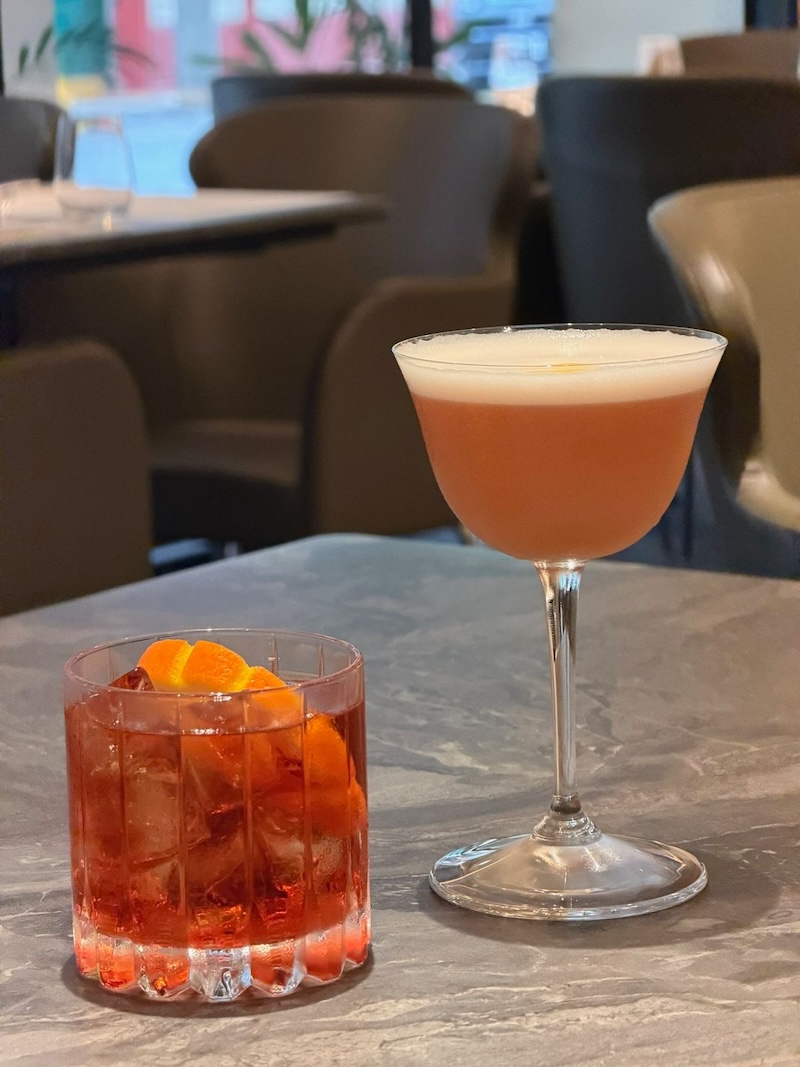 The bistro also serves cocktails like refreshing Negroni (left) and bourbon-based Millionaire 26.