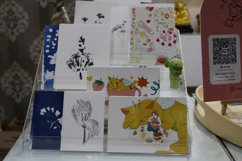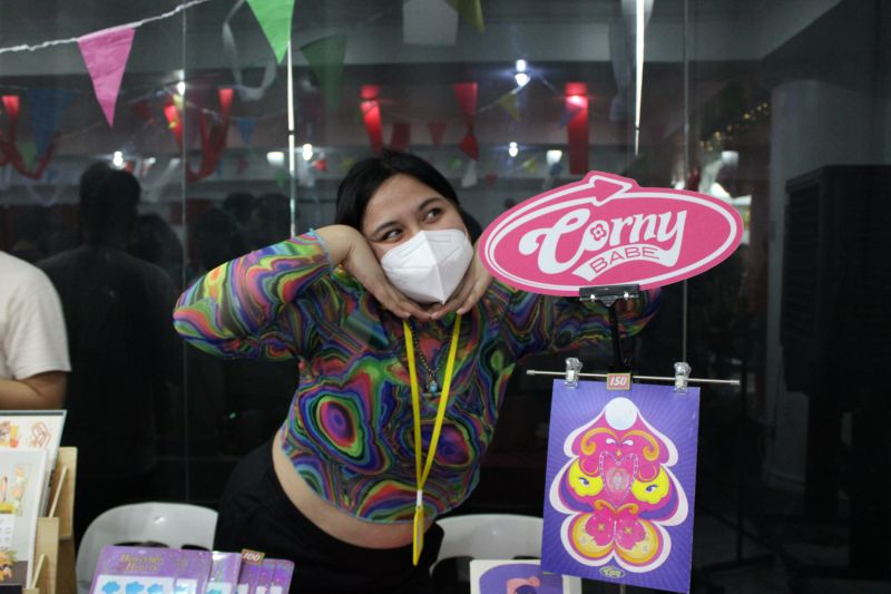 Charlene Gallardo, corny.babe, another exhibiting artist, with her merchandise