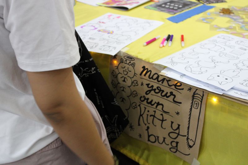 The _Make Your Own Kittybug_ stand where visitors can customize their own kittybug character with art materials provided