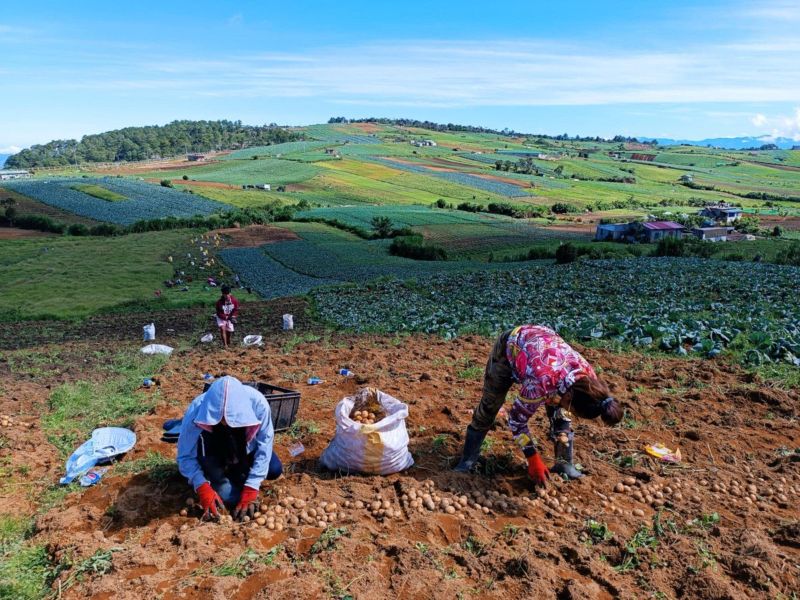 Farmers harvesting potatoes