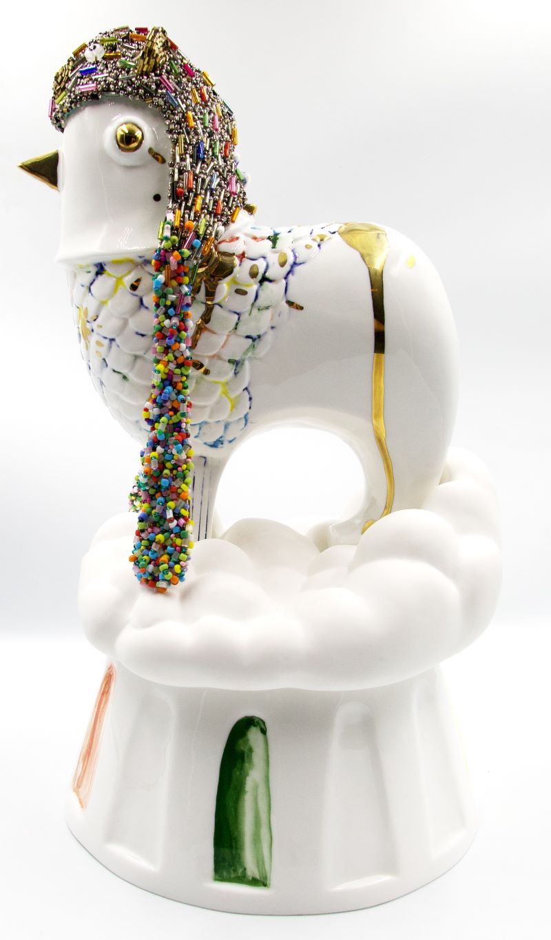 Multidisciplinary artist exhibits chicken porcelain— anthropomorphized, art-toy repository of childhood inspiration