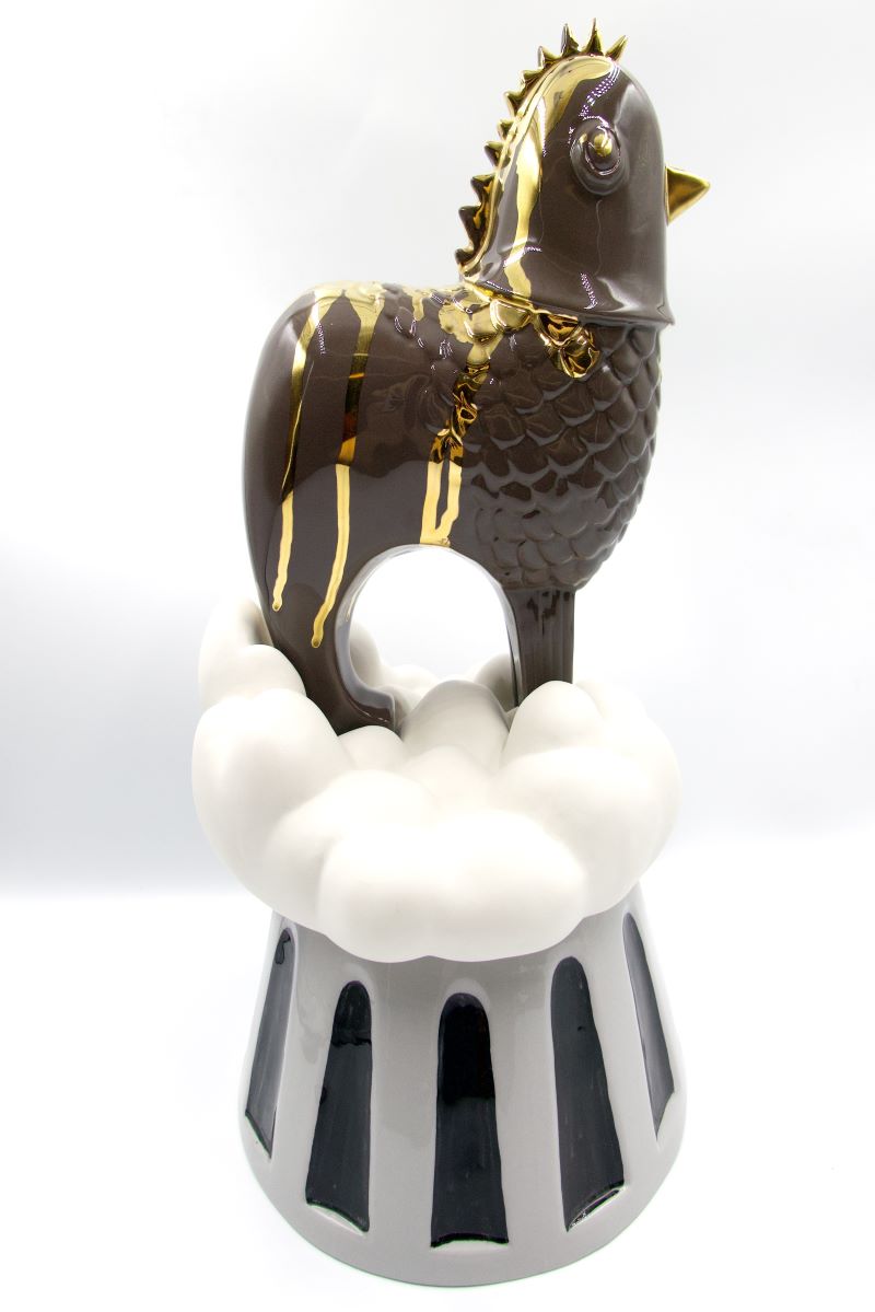Lilianna puts forth into this heat wave of 2024, 23 porcelain chickens (15 large ones and 8 minis) that offer a window into her imagination while poised for you to create your own story, your own creaturely connection. Each piece intersects the realm of anthropomorphism and art toy, showcasing her multidisciplinary ingenuity and approach to artmaking.