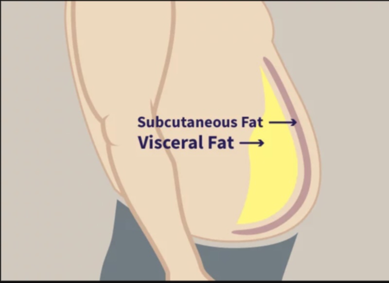 Subcutaneous fat is the stuff under your skin that’s less deadly. Visceral fat, on the other hand, hides deep in your abdomen. (Photo from The Heart Foundation website)