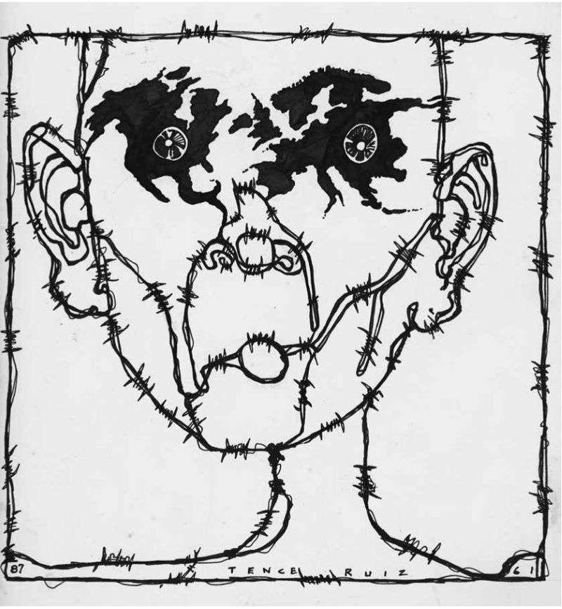 The Barbed Wire Child, 8 5/8inW x 8 3/4 inh Ink on Vellum 06/1/1988, For The Manila Chronicle