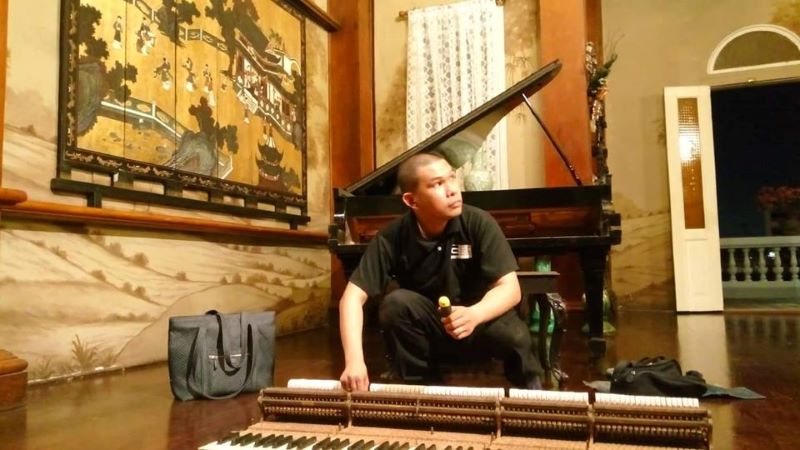 Alex Comoda tuning the baby grand at Nelly garden in Iloilo City