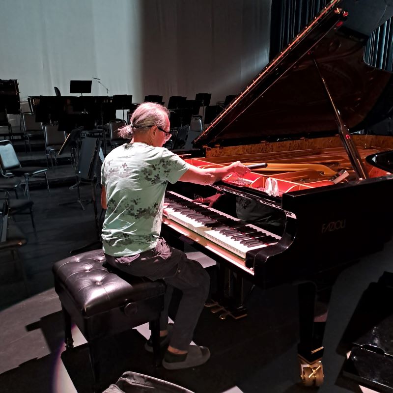 Danny Lumabi tuning the Fazioli piano at Metropolitan Theater