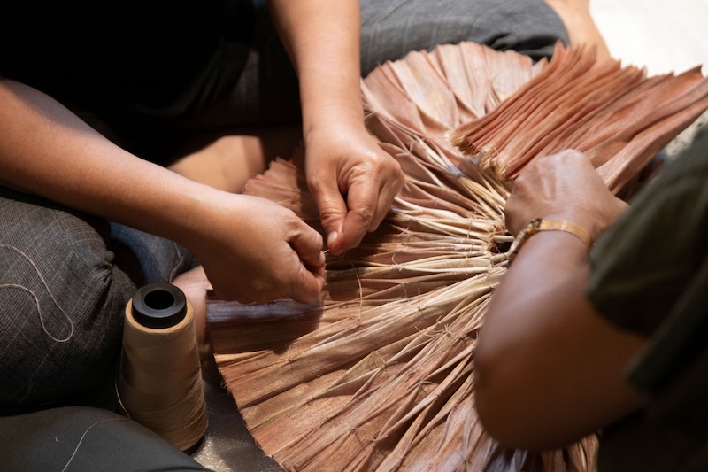 Another featured work in Paris, Hilaw, Laya, is a collaboration between Leeroy New and Hacienda Crafts. Mounted on a log are woven disks that resemble fungi, created by a community for the Negrense furniture and furnishings company.