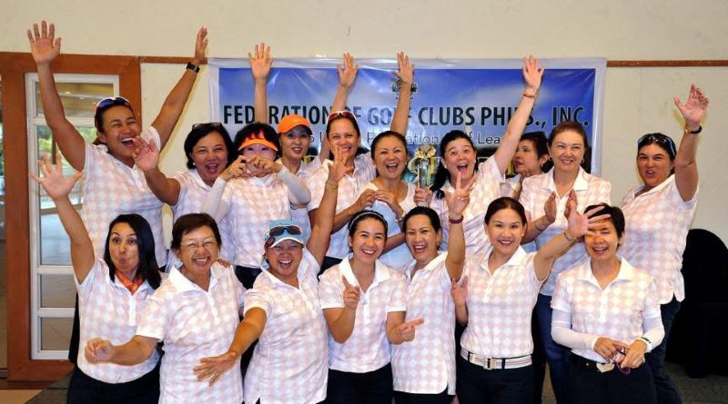 2016 Ladies Fed League champions: (front row) Lisa Jayme, Maline Flores, Gie Bote, Jica Coronel, Rosalie Heo, Jessalynn Tan, and Mely Leyeza; (back row) Karen Buenaventura, Erlie Gamut, Sophia Kim, Grace Jung, Becky Albert, Captain Len Yaptangco, Captain Sandy Romualdez, Totelle Dimson, Hedy See, and Farah Imperial